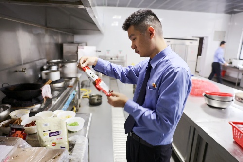 检查组还重点关注在押人员健康保障与食品安全,细致检查医务室药品登记、有效期管理及发药流程,确保年老、体弱、患病在押人员正常用药和及时治疗。同时,对食堂卫生状况、食材质量、食品留样及采购登记等环节进行严格查验。检查中,检查组成员、该院刑事执行检察部干警曹新宇拿起一份留样食品,向食堂管理人员说:“留样记录和实物要做到一一对应,一定要确保在押人员吃得安全、吃得放心。”