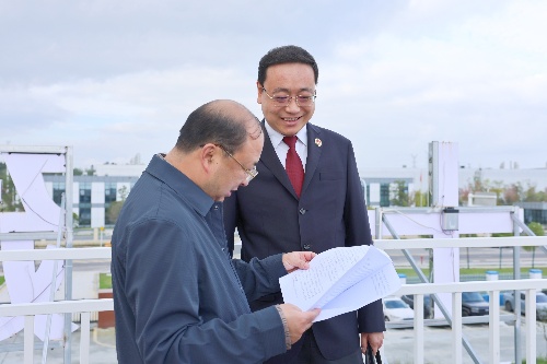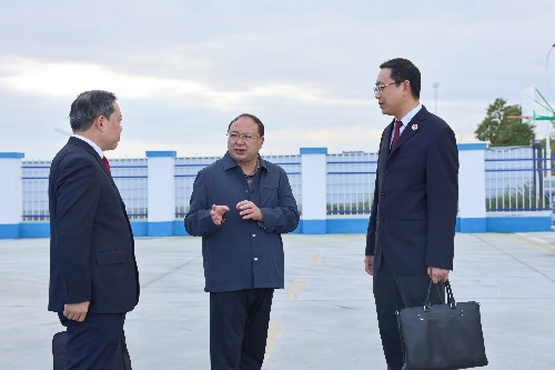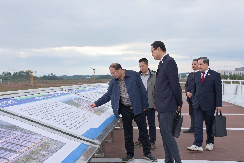 在开发区相关负责人陪同下,刘春黎检察长一行首先实地参观了产业园的建设现场。塔吊林立的工地、有序运转的设备、忙碌施工的人员,展现出一派蓬勃发展的生机景象。检察人员边走边看,边听边问,详细了解了园区的整体规划、产业布局、项目建设进度以及未来发展规划,切身感受县域经济高质量发展的强劲“脉搏”。